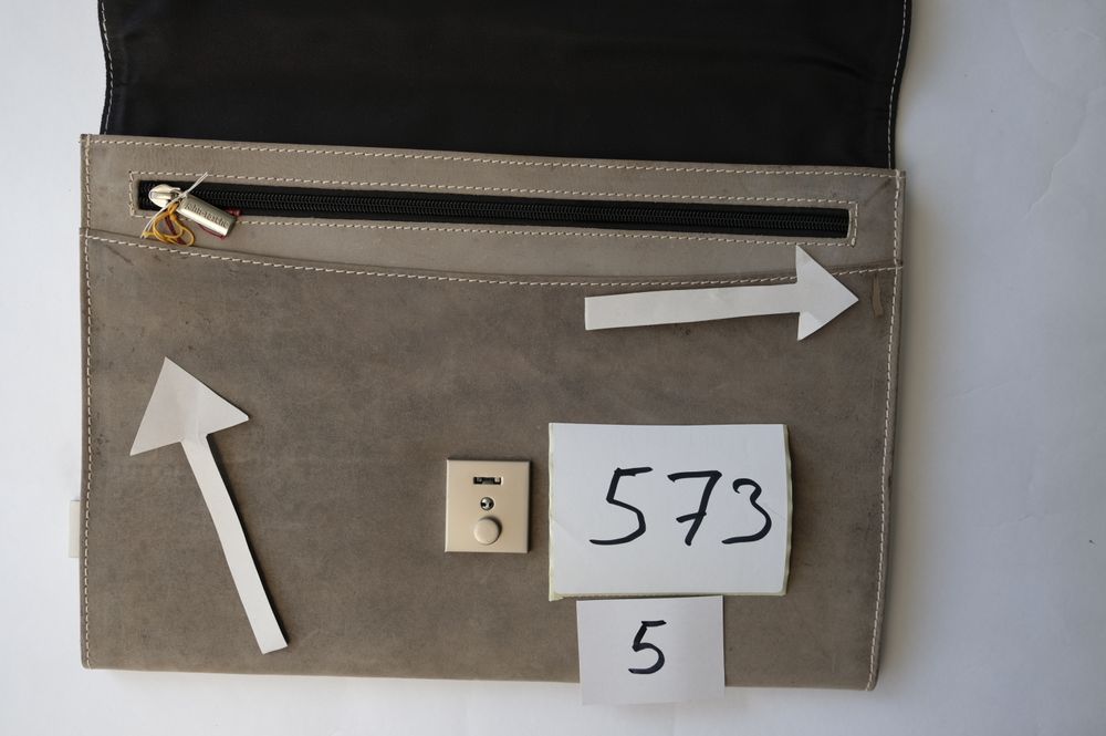 Abschließbare Ledermappe / Aktenmappe aus Echt-Leder in Grau (1022)