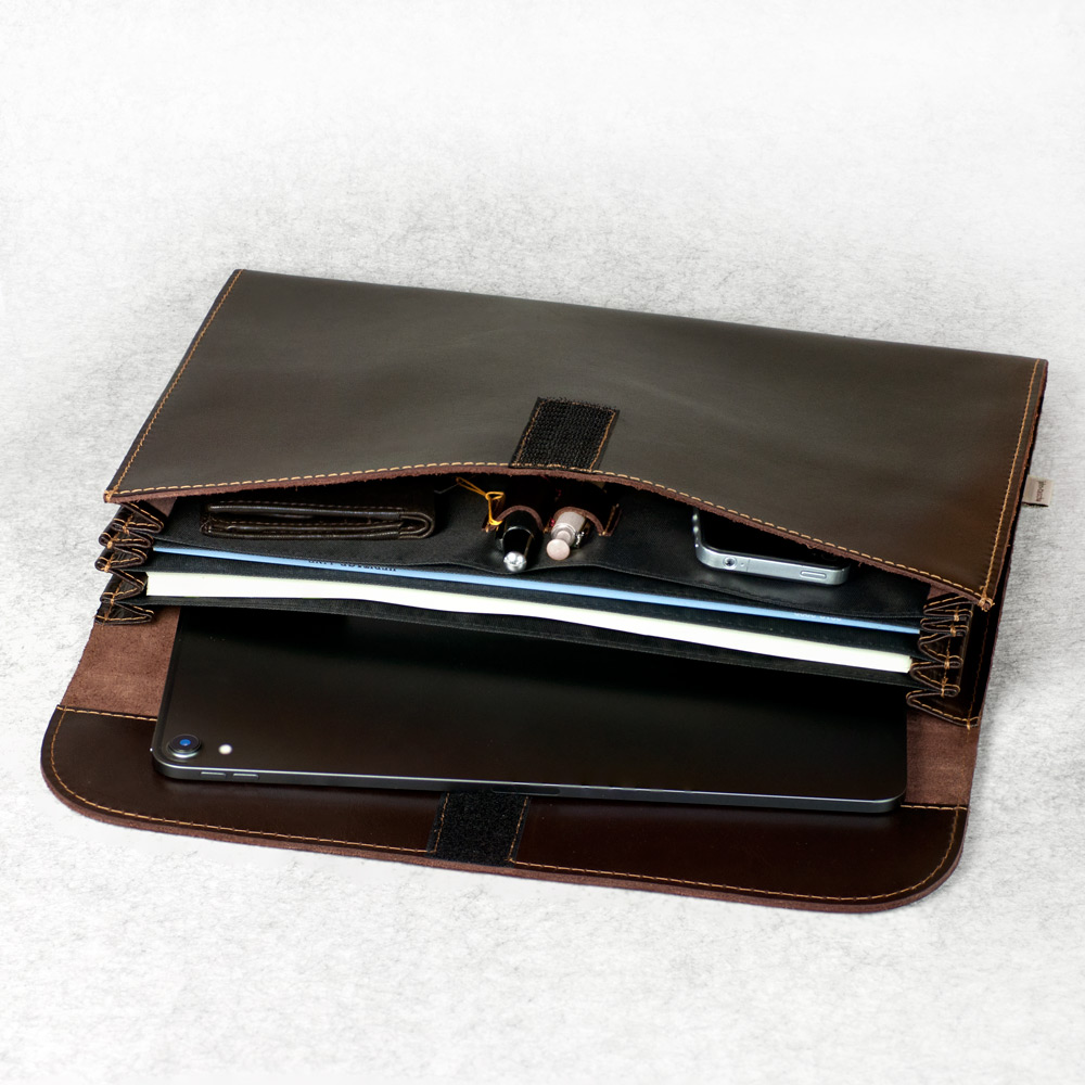 1042-anilin: Schlichte braune Dokumentenmappe im A4-Format – für Damen und Herren