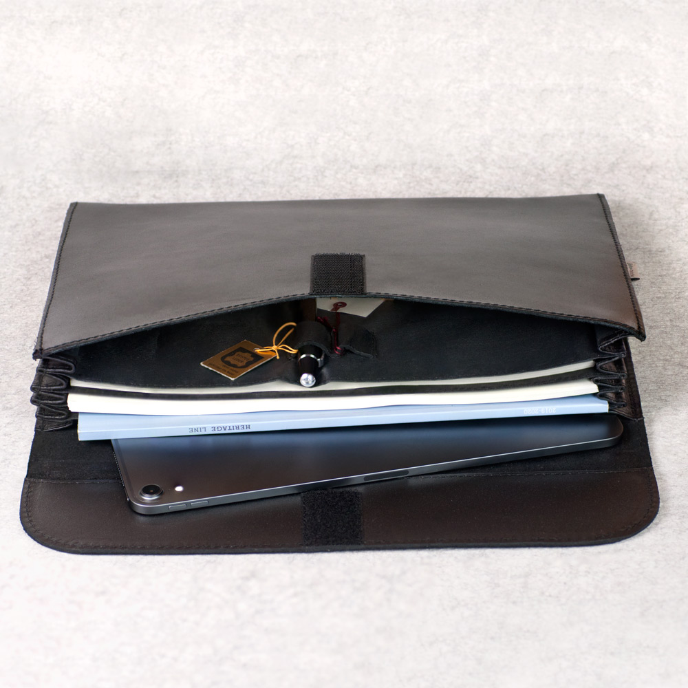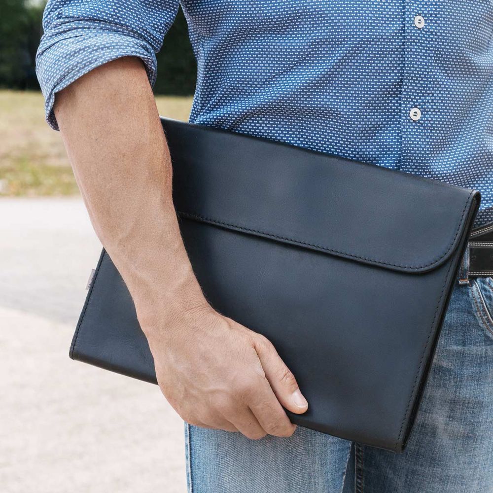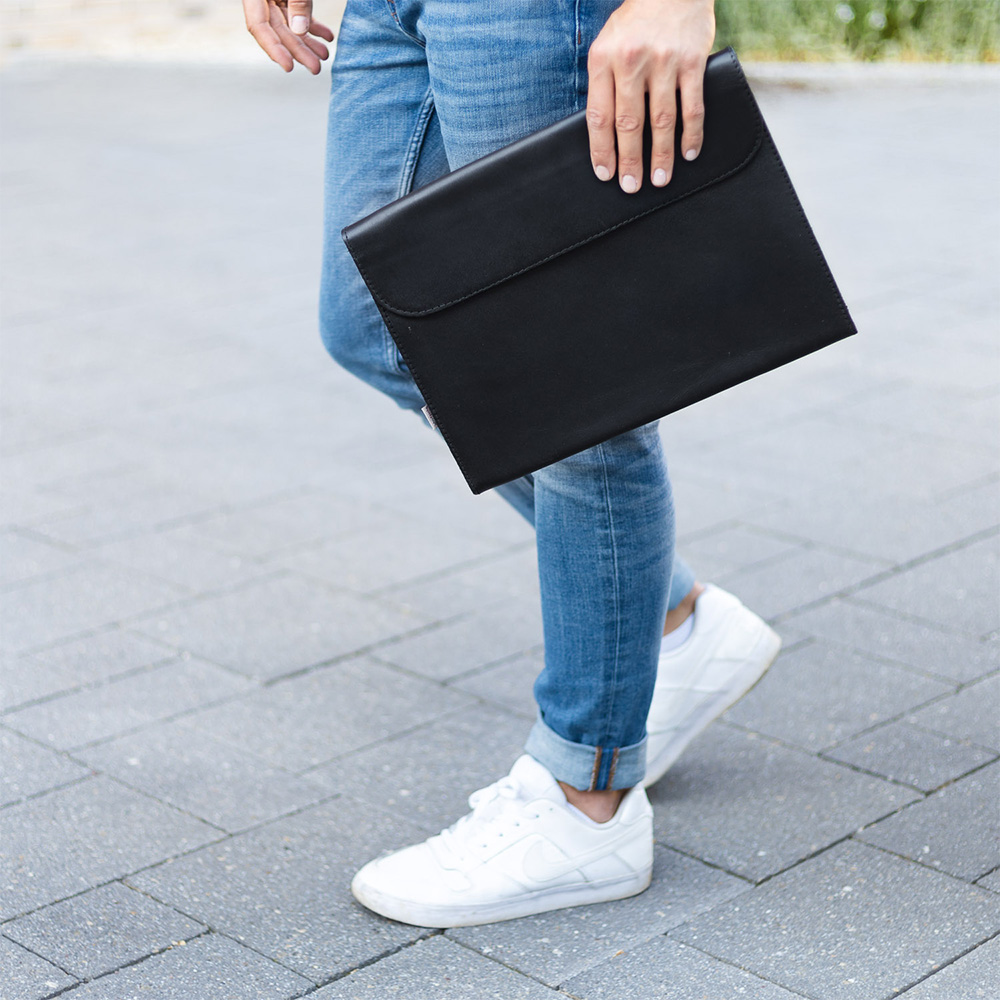 1042-anilin: Schlichte schwarze Dokumentenmappe im A4-Format – für Damen und Herren