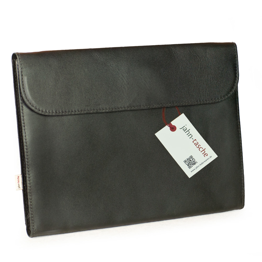 B-Ware Jahn-Tasche – A4 Dokumentenmappe / Dokumententasche / Aktenmappe / Fächermappe / Ordnungsmappe / Konferenzmappe / Ledermappe, Stauraum: Tablet-PC, A4-Schnellhefter, keine Aktenordner, Größe M, aus echtem Anilin-Leder, handgefertigt, Modell 1042-anilin Schwarz, für Damen und Herren