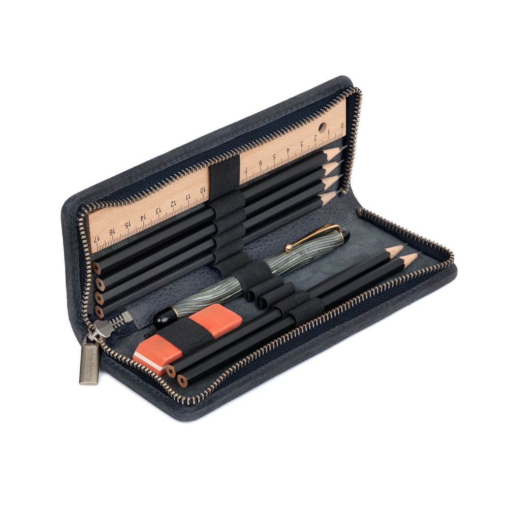 012: Elegant, blue black pencil case made out of high quality buffalo leather – for women and men