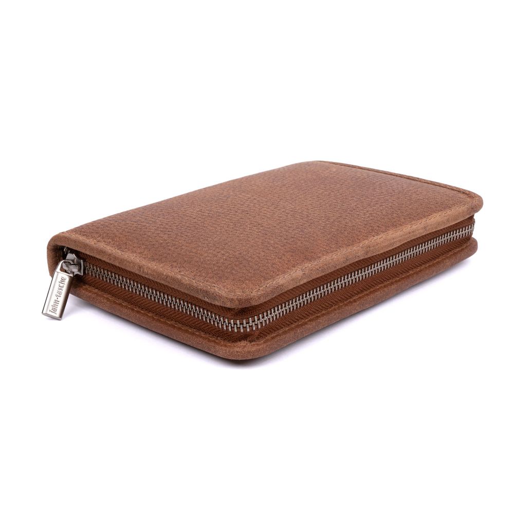High quality leather etui / foldable pencil case made out of real leather in cognac brown (014)
