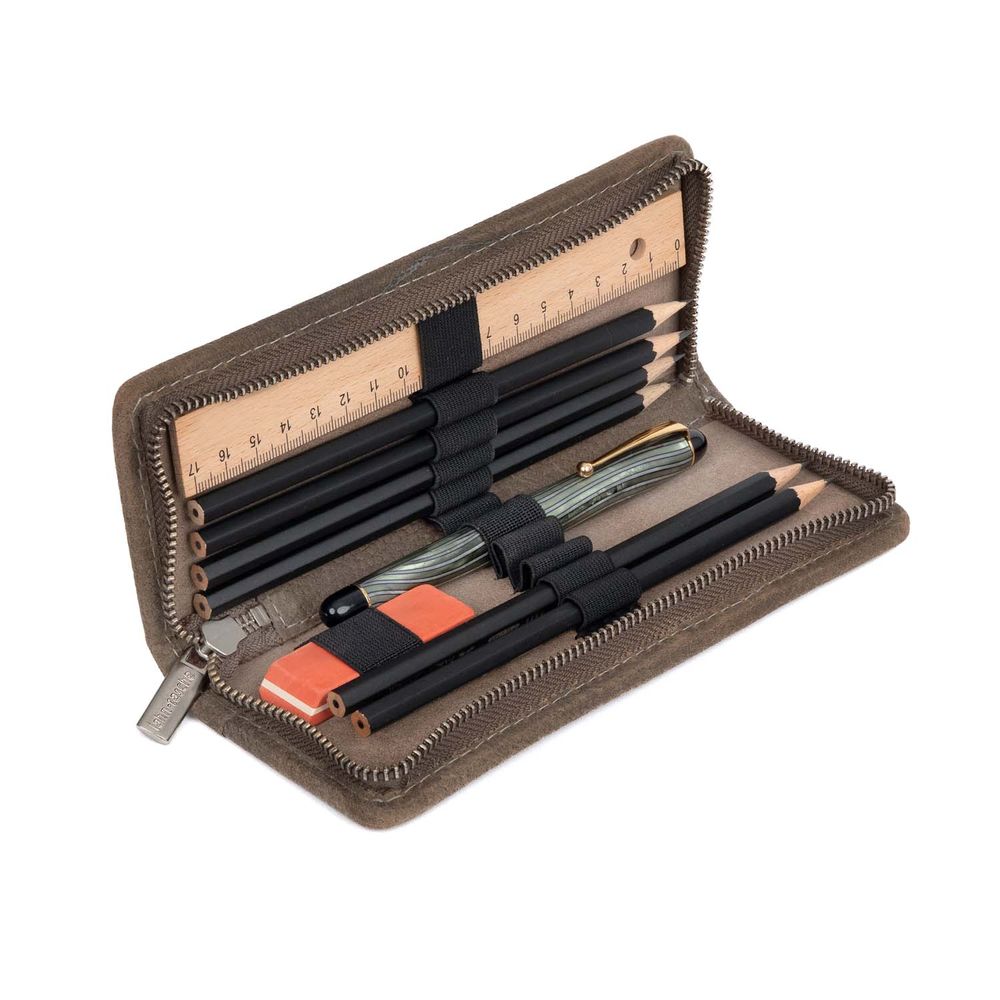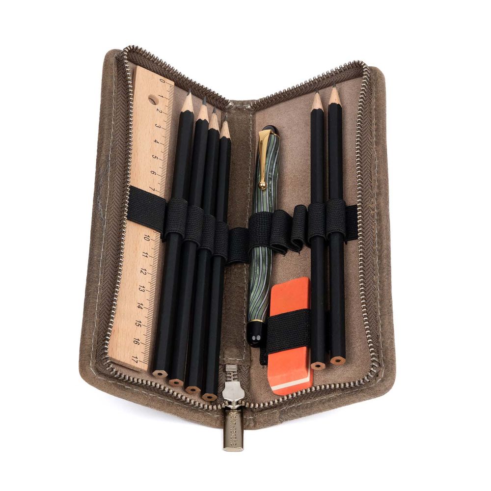 012: Elegantes, graues Federmäppchen aus hochwertigem Büffelleder – für Damen und Herren