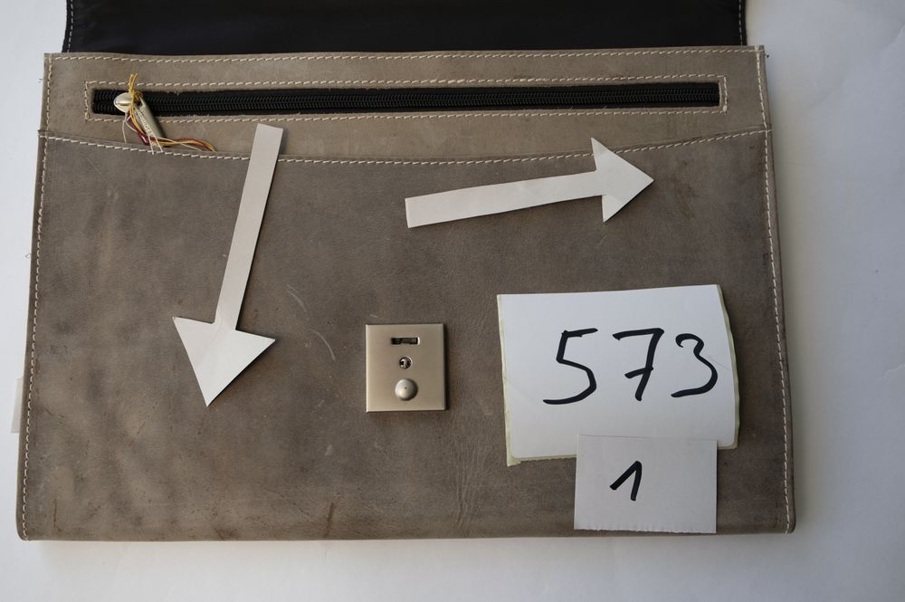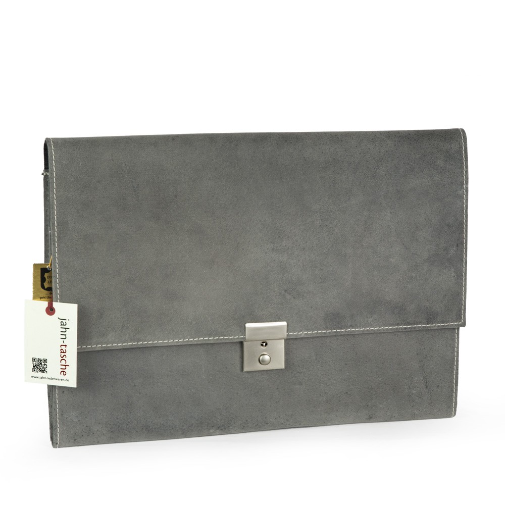 B-Ware Jahn-Tasche – A4 Aktenmappe / Dokumentenmappe, aus Büffel-Leder, Grau, Modell 1022, Nr. 573/1