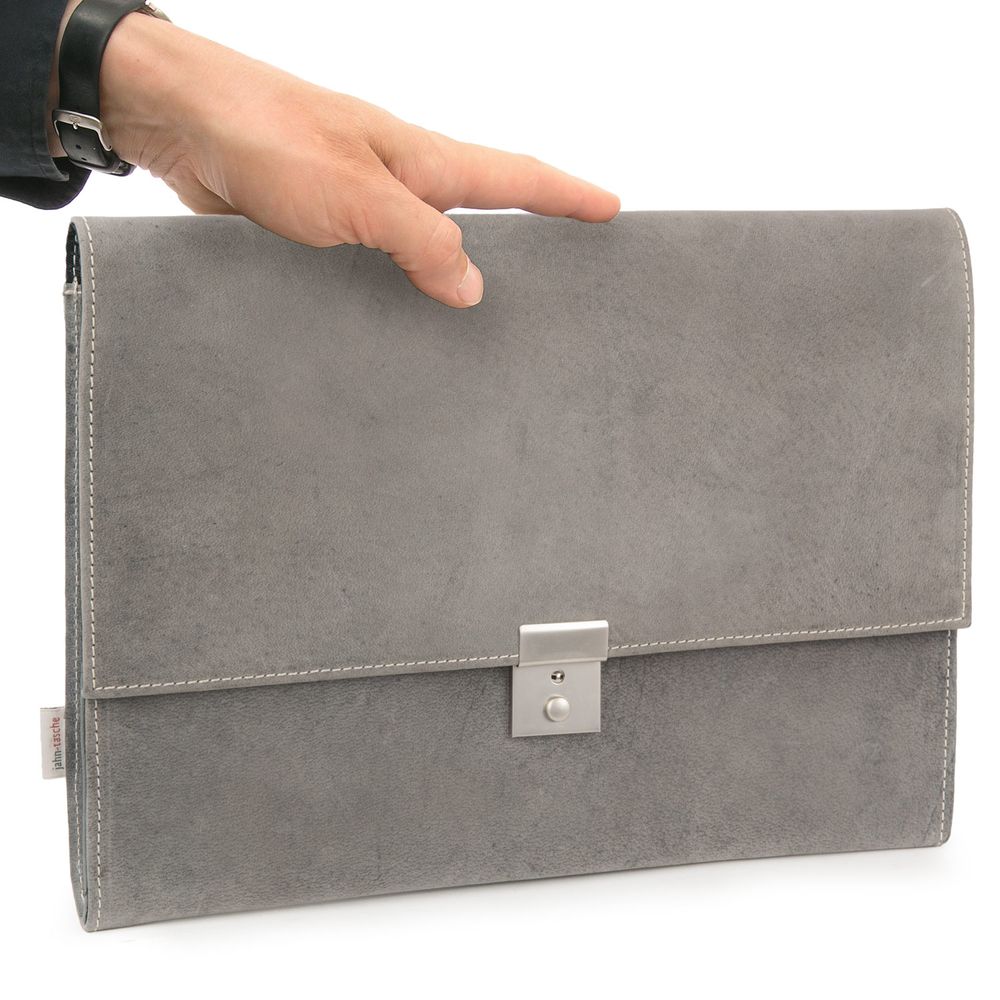 B-Ware Jahn-Tasche – A4 Dokumentenmappe / Dokumententasche / Aktenmappe / Fächermappe / Ordnungsmappe / Konferenzmappe / Ledermappe, Stauraum: Tablet-PC, A4-Schnellhefter, keine Aktenordner, Größe M, aus Büffel-Leder, handgefertigt, Modell 1022 Grau, für Damen und Herren