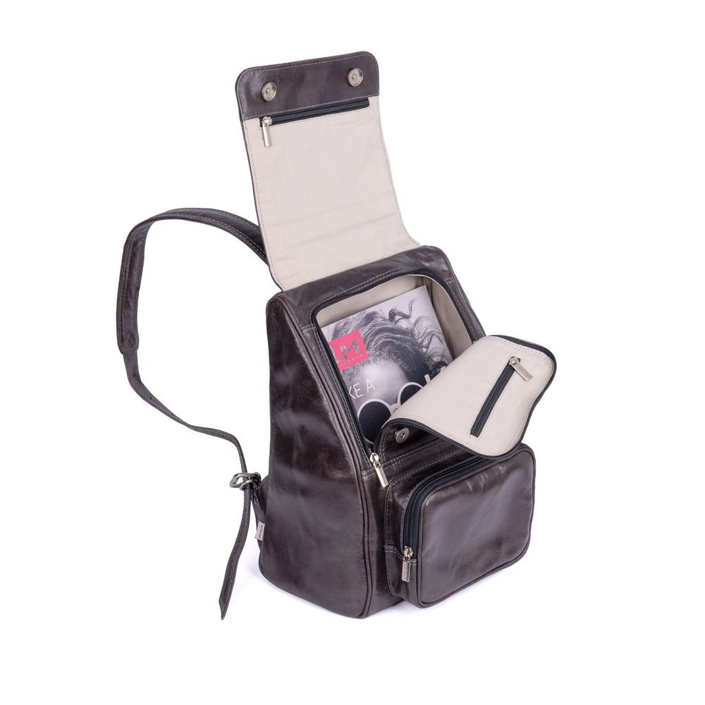 Bitte beachten Sie die Maße: Wollen Sie diesen exklusiven City-Rucksack im gleichen eleganten Stil doch lieber etwas größer, wählen Sie bitte aus unseren Lederrucksäcken Modell 711 (Größe L) bzw. 709 (Größe XL, mit zusätzlichen seitlichen Außentaschen).
