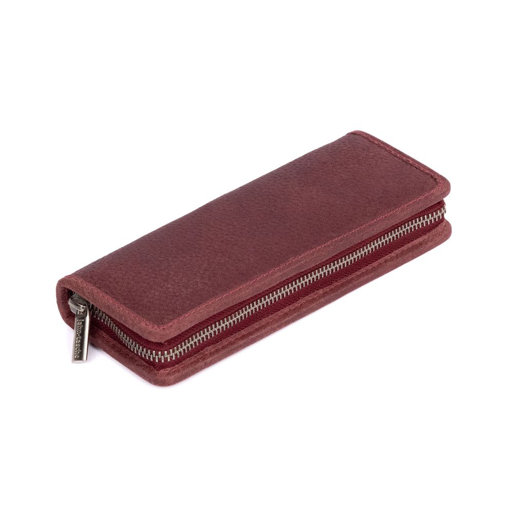 012: Elegantes, rost-rotes Federmäppchen aus hochwertigem Büffelleder – für Damen und Herren